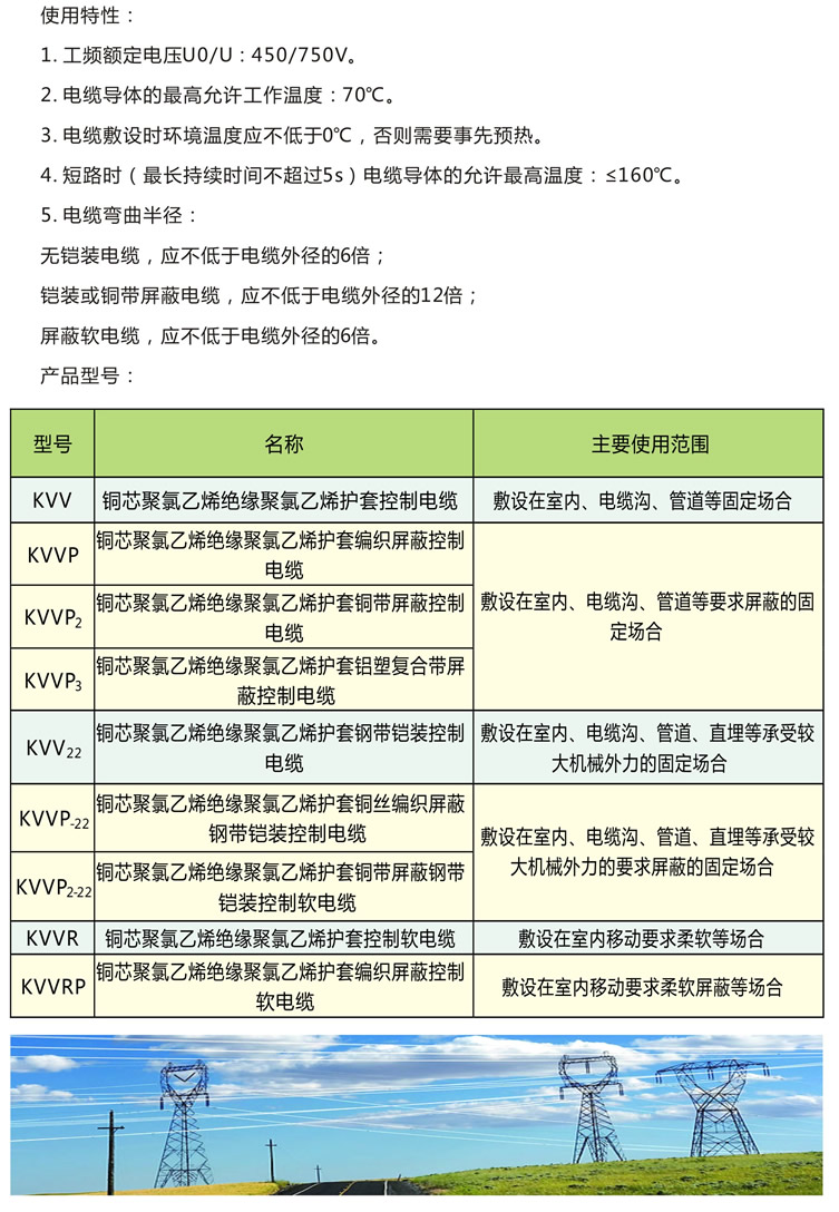 二、使用范圍 交聯(lián)聚乙烯絕緣控制電纜適用于額定電壓450/750v及以控制、信號、保護及測量系統(tǒng)接線之用。