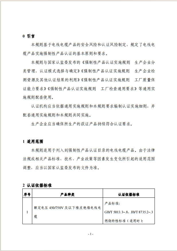 電線電纜 強制性產品認證實施規則